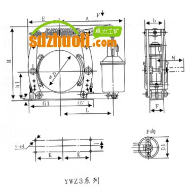 6、YZW、YZW3使用YTI系列推動器,一般適用于垂直工作,傾斜度不超過±去 15°