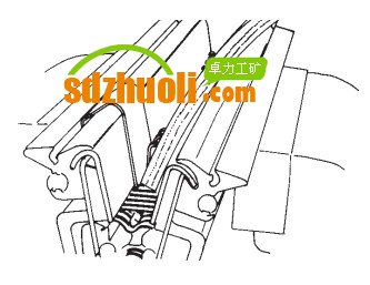 9. 當(dāng)完成時(shí),拆除穿銷(xiāo),抓緊帶扣并取出輸送帶。 當(dāng)所需連接的輸送帶寬于帶扣: